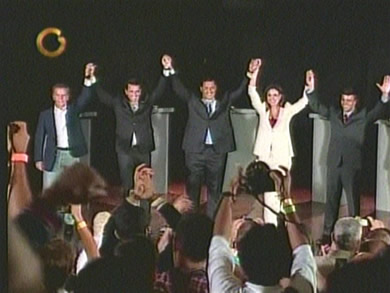 ND (actualizado 10:45pm).- Tal como estaba previsto, el debate entre los precandidatos presidenciales a las primarias de la oposición inició a las 8 pm de este lunes. Durante poco más de hora y media, los precandidatos debatieron sobre empleo, educación y seguridad.