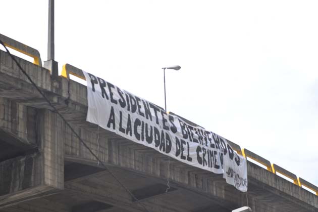 "Presidentes: Bienvenidos a la Ciudad del Crimen", decía otra asimismo retirada por funcionarios del orden público que aludía a la inseguridad ciudadana.